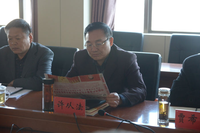 2017年11月13日,菏泽市地税局召开党组扩大会议,专题学习党的十九大会议精神。会上,菏泽市局党组书记、局长许从法对十九大报告内容进行讲解,并对学习贯彻落实十九大会议精神提出具体要求,要求结合当前正在开展的“两学一做”学习教育常态化制度化和“纪律行动”活动,引导和动员广大党员干部群众进一步提高认识、加深理解,坚定信念、振奋精神,奋发有为地做好各项地税工作。市局领导,各科室、分局负责人参加会议。