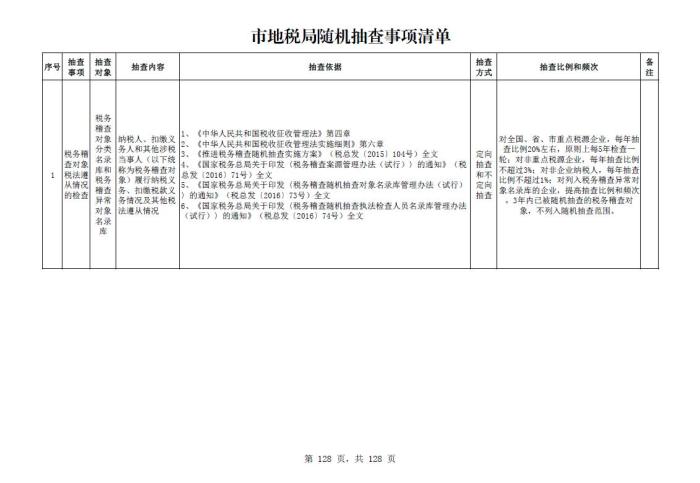 市地税局随机抽查事项清单
